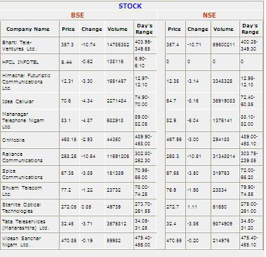 What started yesterday with investors in the stock exchanges showing thumbs down for the competitive tariffs announced by RCom continued today as well with all the listed operators reporting significant drop in valuations.