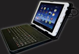 The tablet also has Wi-Fi and a slot for a 3G USB dongle. It has a 1.2GHz processor, 1GB RAM, and 8GB of internal storage, which can be expanded up to 32GB.