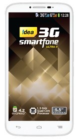 Idea ULTRA II is a 3G smartphone. It has 5.5 inch screen display, an 8 megapixels rear camera with HDR and 2 megapixels front camera with LED flash, and video-conferencing facility. The dual-SIM smartphone is powered by a 1.3 Quad Core Processor and runs on the latest Android Jelly Bean 4.2 OS.