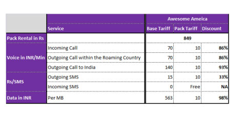 Awesome America can be used while roaming in USA. Calls and data at Rs. 10.