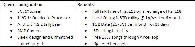 The Canvas Beat smartphone offers Enhanced 3D inbuilt surround speakers, free Head set and earphone, free songs for limited period and Large IPS screen for clear visual display. This will enhance the experience of listening to music on mobile handset by many folds. The 3G smartphone comes with a unique offer to attract music movers, consisting of full talk time, free data benefits high end music headsets, and an Aircel music app installed in the handset and gives user the benefit of 1000 free songs. The smartphone will be available at all Aircel stores for a special price of Rs. 9999.