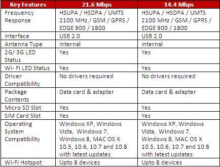 Users can enjoy high speed internet by simply plugging the device without having to worry about installing the device to a computer or a laptop. Additionally, the data cards support Wi-Fi hotspot enabling the user to share connection via Wi-Fi with up to 8 gadgets.
