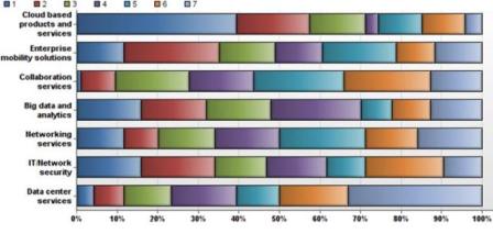 • Similarly, for Managed Secure Network-to-Cloud Solutions too, Consulting companies were a close No. 2 as preferred partners and Equipment Vendors like Cisco, Avaya and Oracle were not a distant No. 3 either.