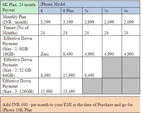 An 16 GB iPhone 6 of Rs. 53,500 under iPhone 6K Plan comprising 6000 minutes, 1500 SMS and 6GB of 3G Data plan will now be available at an all-inclusive EMI of INR 3599/month for a period of 24 months. Under iPhone 10K Plan, comprising 10000 minutes, 2500 SMS and 10 GB of 3G data will be available at an all-inclusive EMI of INR 3999/month for a period of 24 months. The Monthly EMI includes handset cost, Local/STD calls, local/national SMSes, 3G Data and applicable taxes and Interest.