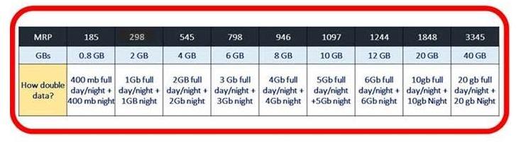 • Innovative Double Data 3G pre-paid packs that redefine affordability and offer great value to customers by providing additional data benefits at night, effectively doubling the data limits for customers. With the new packs, customers will be able to save up to 40% on recharges, when compared to existing data packs. e.g. with the new double data pack of Rs 298/-, customers will get 2GB data (1GB 3G regular + 1GB night) with the validity of 28 days.