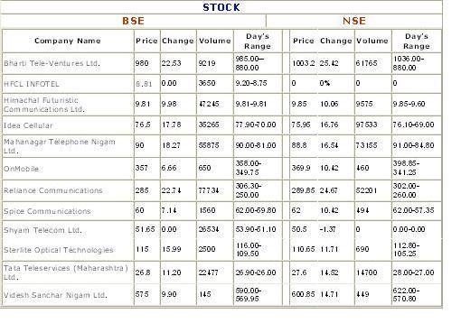 Fierce competitor Bharti Airtel too performed very strongly with 22.53 % rise in stock prices at Rs 980 in BSE and 25.42 % rise in NSE at Rs 1003.2.
