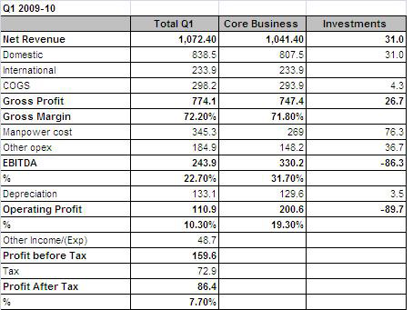 Net revenues for core business in the domestic market were at Rs 80.75 crore while those from the international market were at Rs. 23.4 crore.