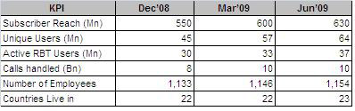 OnMobile said that subscriber base increased to 630 million as compared to 600 million at end of March, 2009 with unique visitors at 64 million.