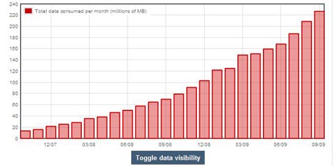 For instance the number of page views on Opera Mini more than tripled during the time period from September 2008 to September 2009, precise rate is 202.6%. Unique users grew by 61.4 % while page-views per user were seen at 339.