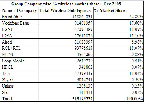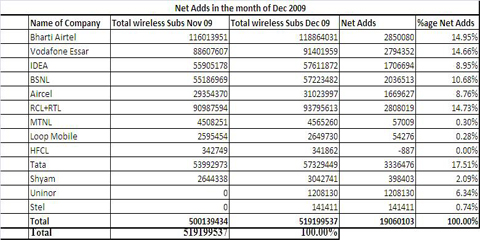 Precisely, TTSL added 3,336,476 new subscribers in December 2009. In November too it had added 3.3 million subscribers.