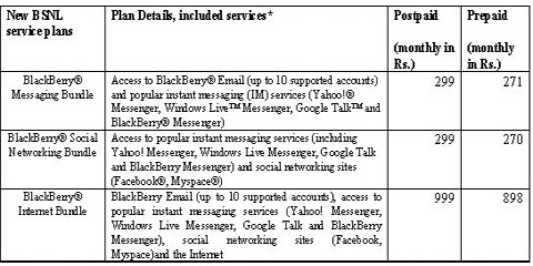 The three new plans are BlackBerry® Internet Bundle service plans, BlackBerry® Messaging Bundle service plans and BlackBerry® Social Networking Bundle service plans offering the subscriber to choose from range of services related to instant messaging, social networking and internet browsing requirements of the subscriber.