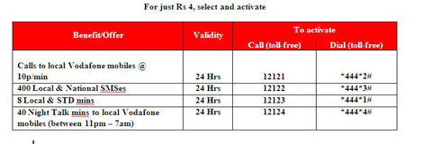 Existing subscribers can avail information about the Rs. 4 Bonus offer and also activate the service by dialing the special toll free advisory number *121*. On activation, Rs. 4 will be deducted from the main account balance and the benefit will be valid for one day.
